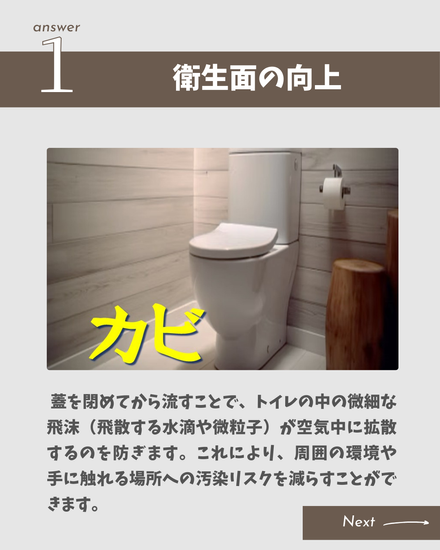 そこで、毎日『トイレの蓋閉めて〜』と言っていますが、なんで?ときかれたのは初めてで、簡単には答えましたが気になって調べてみました!